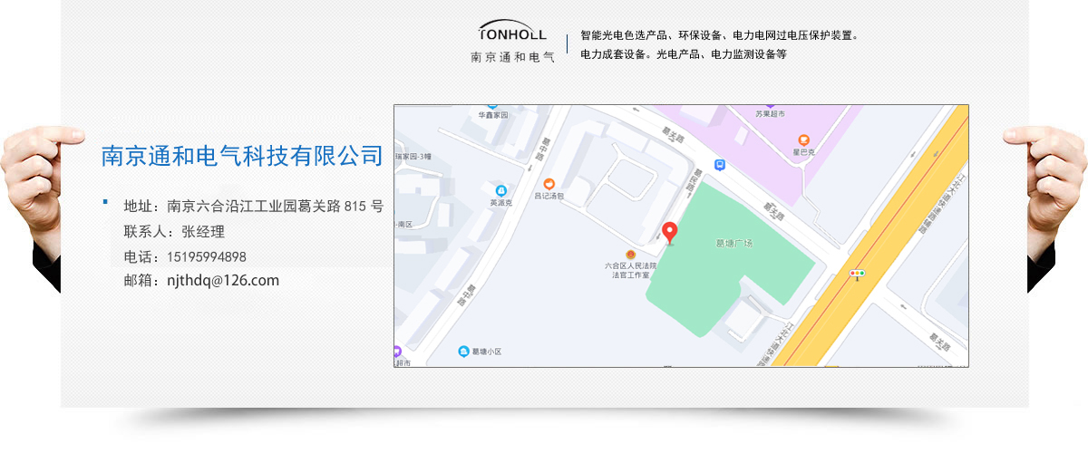 南京通和電氣科技有限公司是致力于研發(fā)、 生產(chǎn)防雷產(chǎn)品的科技型企業(yè)。公司集研發(fā)、生產(chǎn)、銷售、服務(wù)為一體,目前主要產(chǎn)品為:智能光電色選產(chǎn)品、環(huán)保設(shè)備、電力電網(wǎng)過電壓保護(hù)裝置。電力成套設(shè)備。光電產(chǎn)品、電力監(jiān)測(cè)設(shè)備等。公司秉承“誠(chéng)信。創(chuàng)新、和諧。卓越”的經(jīng)營(yíng)理念,研發(fā)創(chuàng)新的專業(yè)態(tài)度服務(wù)客戶,追求卓越,以其高水準(zhǔn)的產(chǎn)品品質(zhì)和良好的企業(yè)信譽(yù),在發(fā)展進(jìn)程中得到了社會(huì)廣泛認(rèn)可。